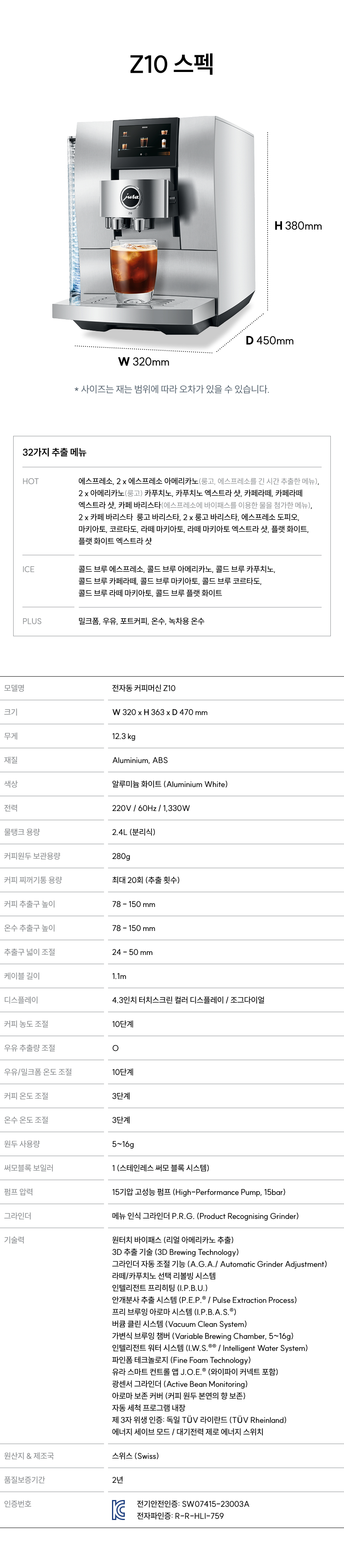 전자동 커피머신 Z10 / 세계 최초 Cold & Hot Brew